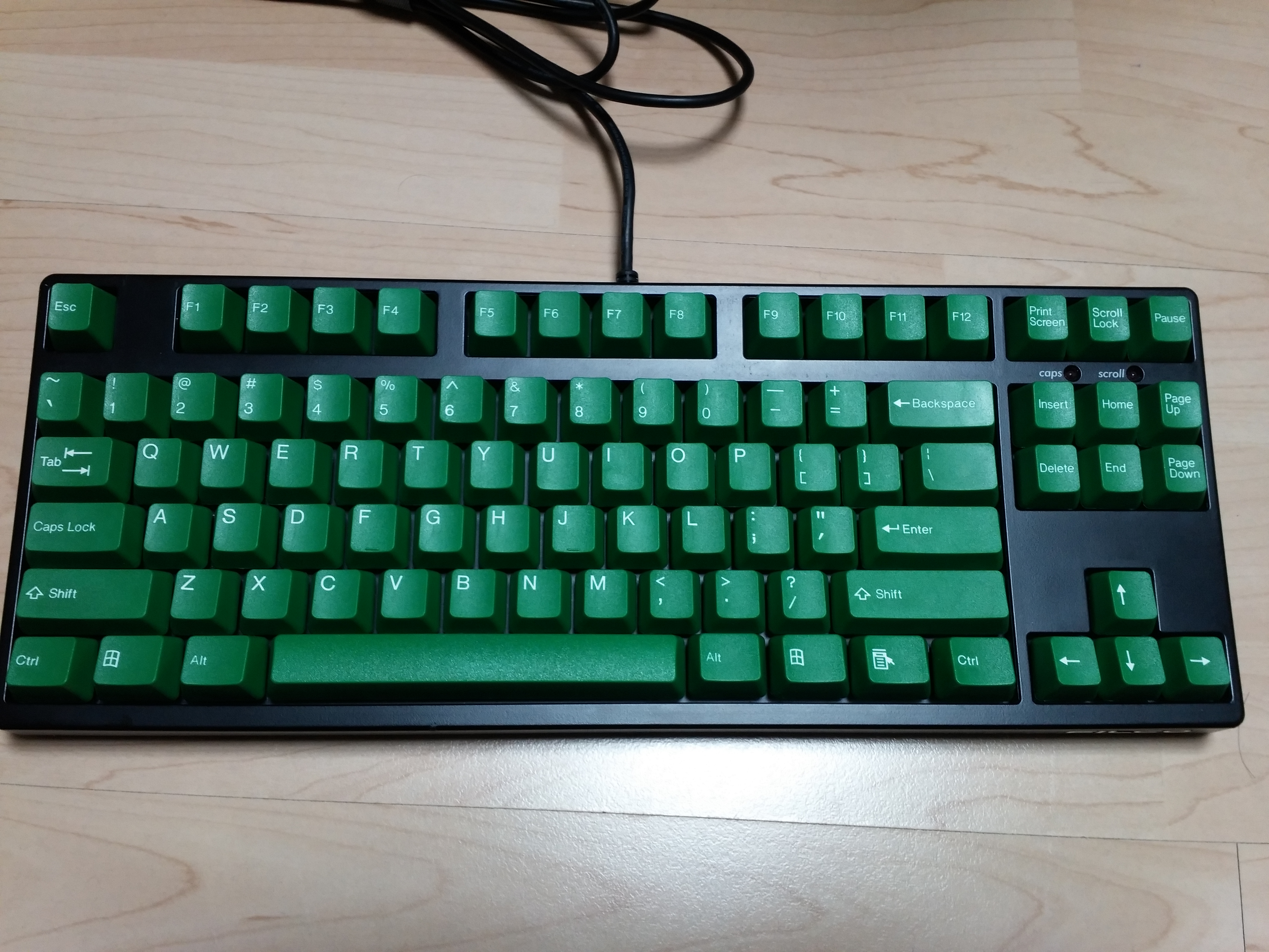 쿨엔조이 특가 공구였던 한성컴퓨터 이색 사출 키캡입니다. 마제스터치 리니어의 순정 키캡이 온전하지 않았는데 이 녀석을 꼽아주기로 했습니다. 윈도우 키의 각인이 조금 아쉽지만 가격으로 모든 것이 용서됩니다 ㅎㅎ