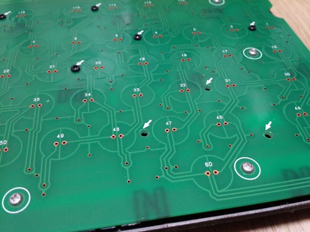PCB 뒷면 입니다. 친절하게 화살표로 나사가 들어갈 곳을 표시해 놓았습니다.