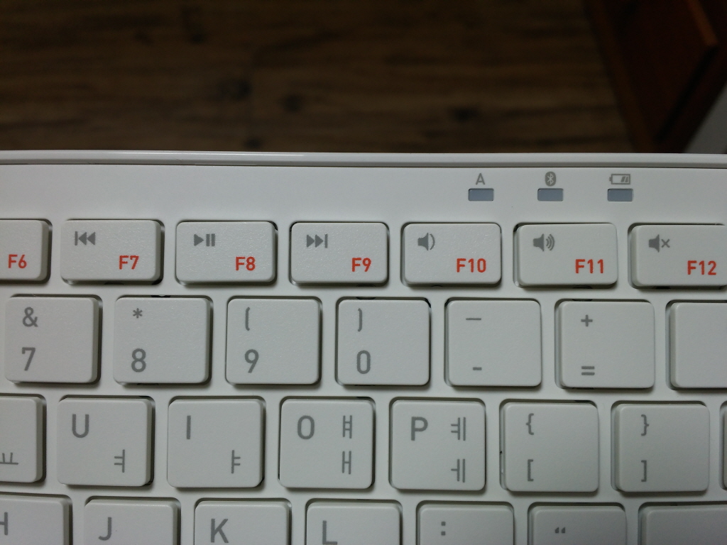키보드의 정면 모습니다. 흰색이라 깔끔해 보입니다.