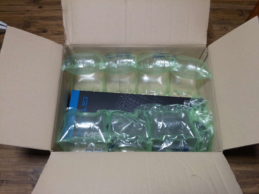 에어캡으로 포장이 되어 있는데, 대충 껴넣은 느낌이라 박스 우측 부분이 훼손 되었습니다.