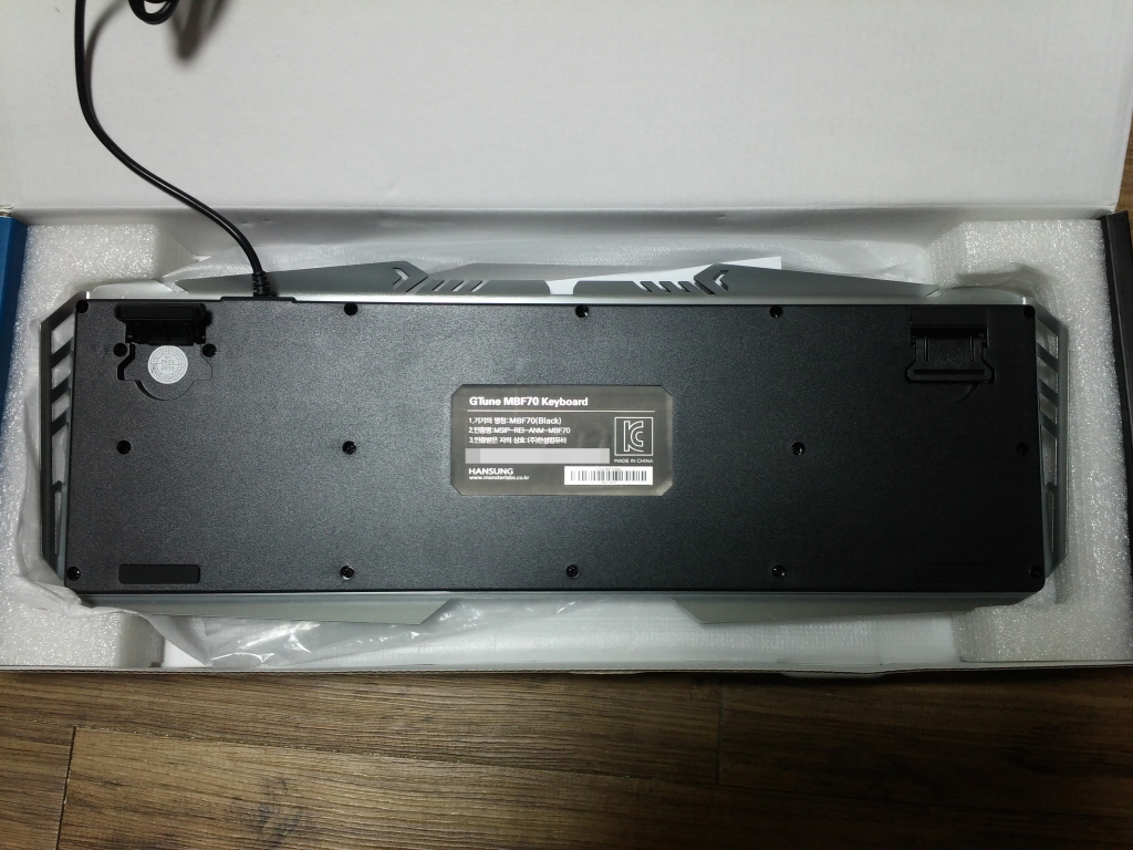 키보드 뒷면의 모습입니다. 고무 받침이 적절하게 위치하여 키보드가 밀리는 것을 방지해 줍니다.