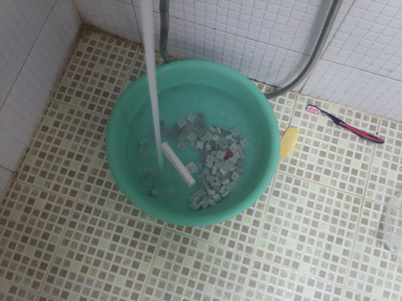 못쓰는 칫솔에 비누를 묻혀 키 하나하나 정성스럽게 세척합니다.