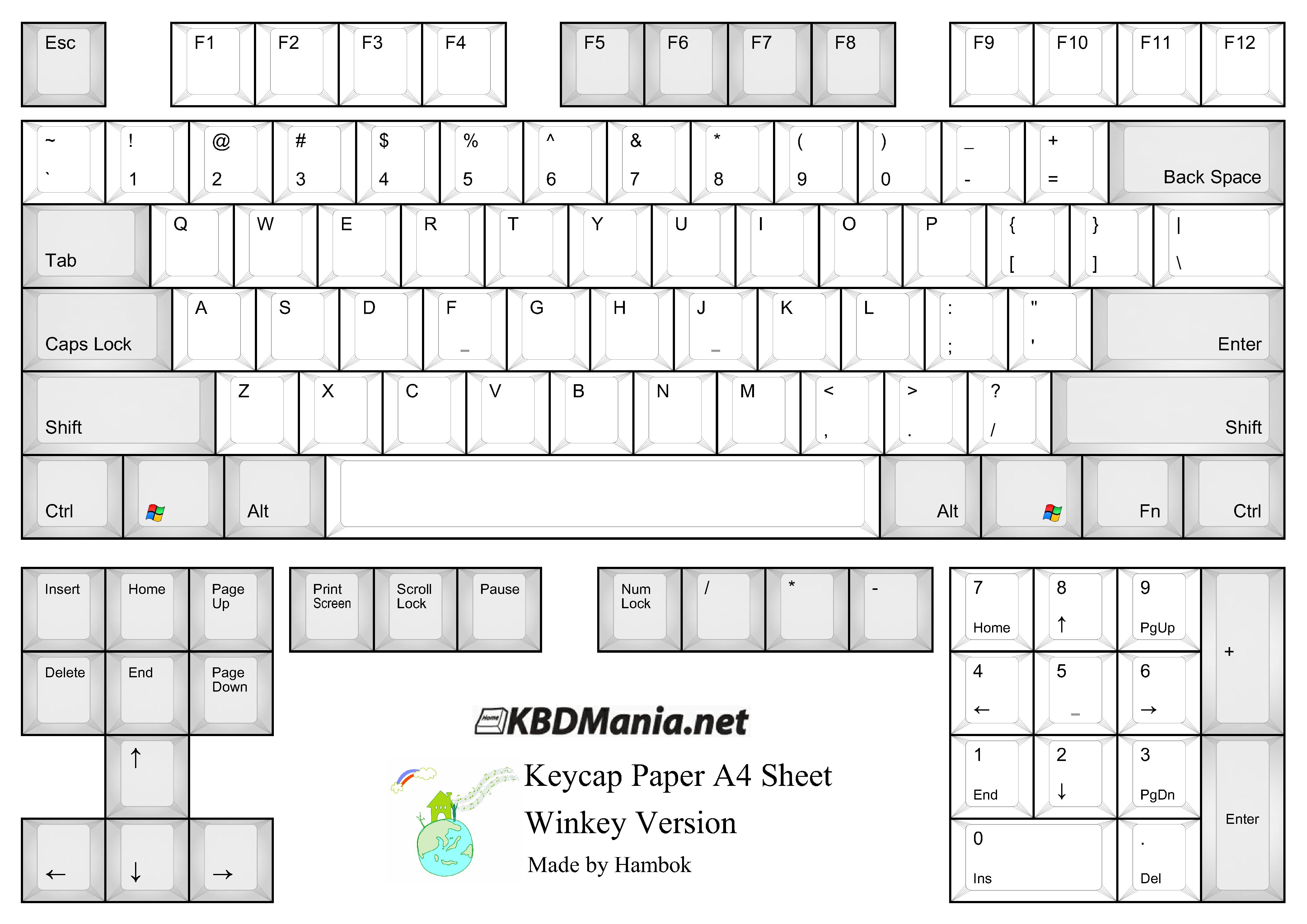 FreeBoard : KBDMania - KeyCap Paper A4 윈키버전, 화이트 그레이 투톤 입니다.