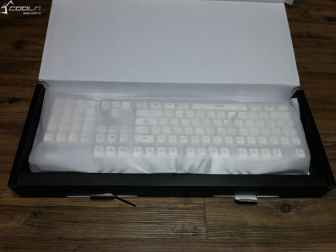 박스를 개봉 하였습니다. 특이한 점으로는 키보드가 반대 방향으로 누워 있습니다.