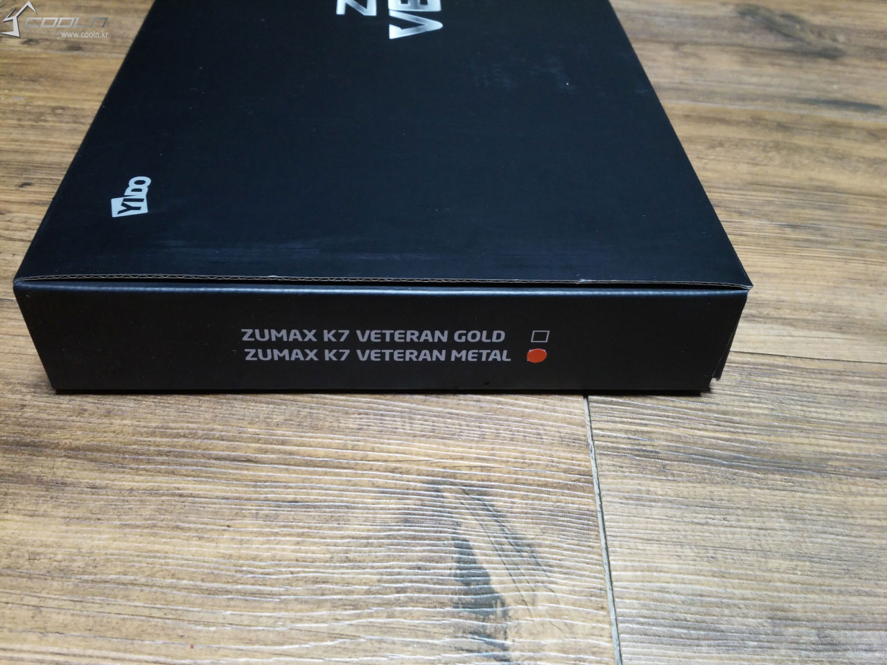 박스의 측면 입니다. ZUMAX K7 VETERAN은 상판의 색상에 따라 골드와 실버 두 종류가 있습니다.