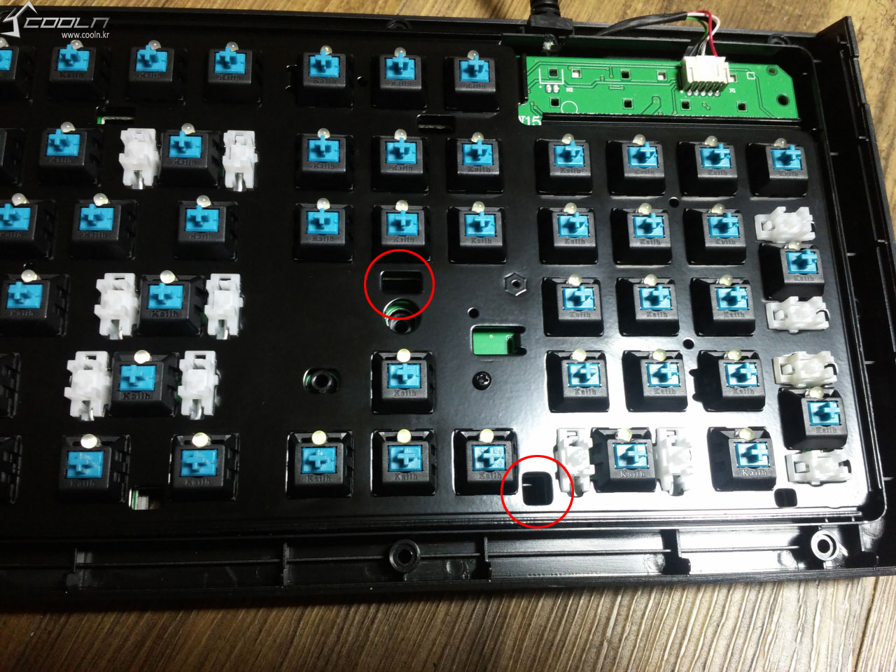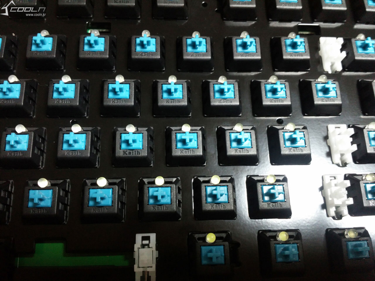 카일 청축 스위치의 모습을 확인할 수 있습니다. 최근 카일, 오테뮤, 게이트론 등의 cherry-like switch들이 많이 출시 되어,