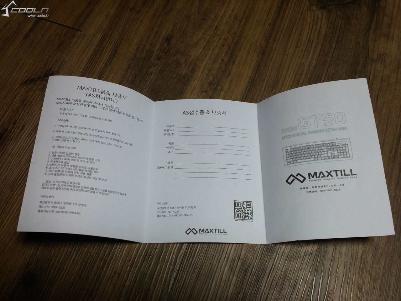 키보드 아래에는 사용설명서 겸 품질 보증서 종이가 있습니다.