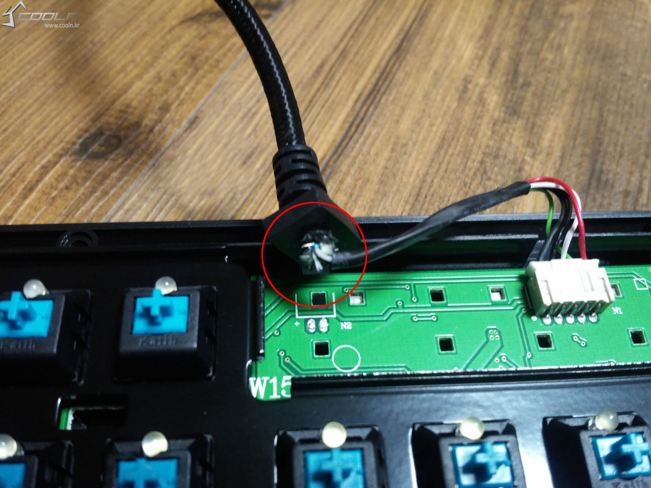 케이블 커넥터와 연결 부분인데, 키보드 사용에는 문제가 없지만 조금 더 깔끔하게 보완이 되면 좋을 것 같습니다.