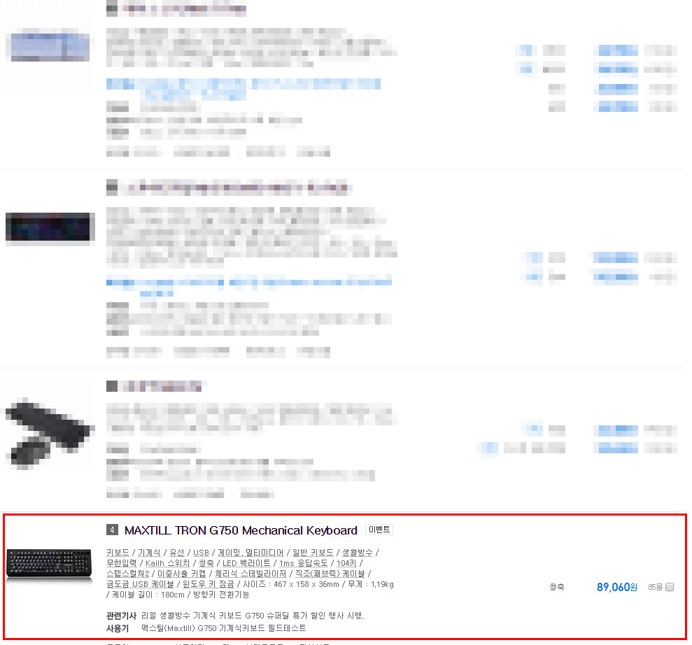 현재 TRON G750 키보드는 다나와 인기 순위 4위에 랭크 되어 있습니다. 비교적 높은 순위라 여겨지는데, 제가 직접 사용해보니 가격적으로나 기능적으로 매력이 있는 키보드라 생각 되었습니다.