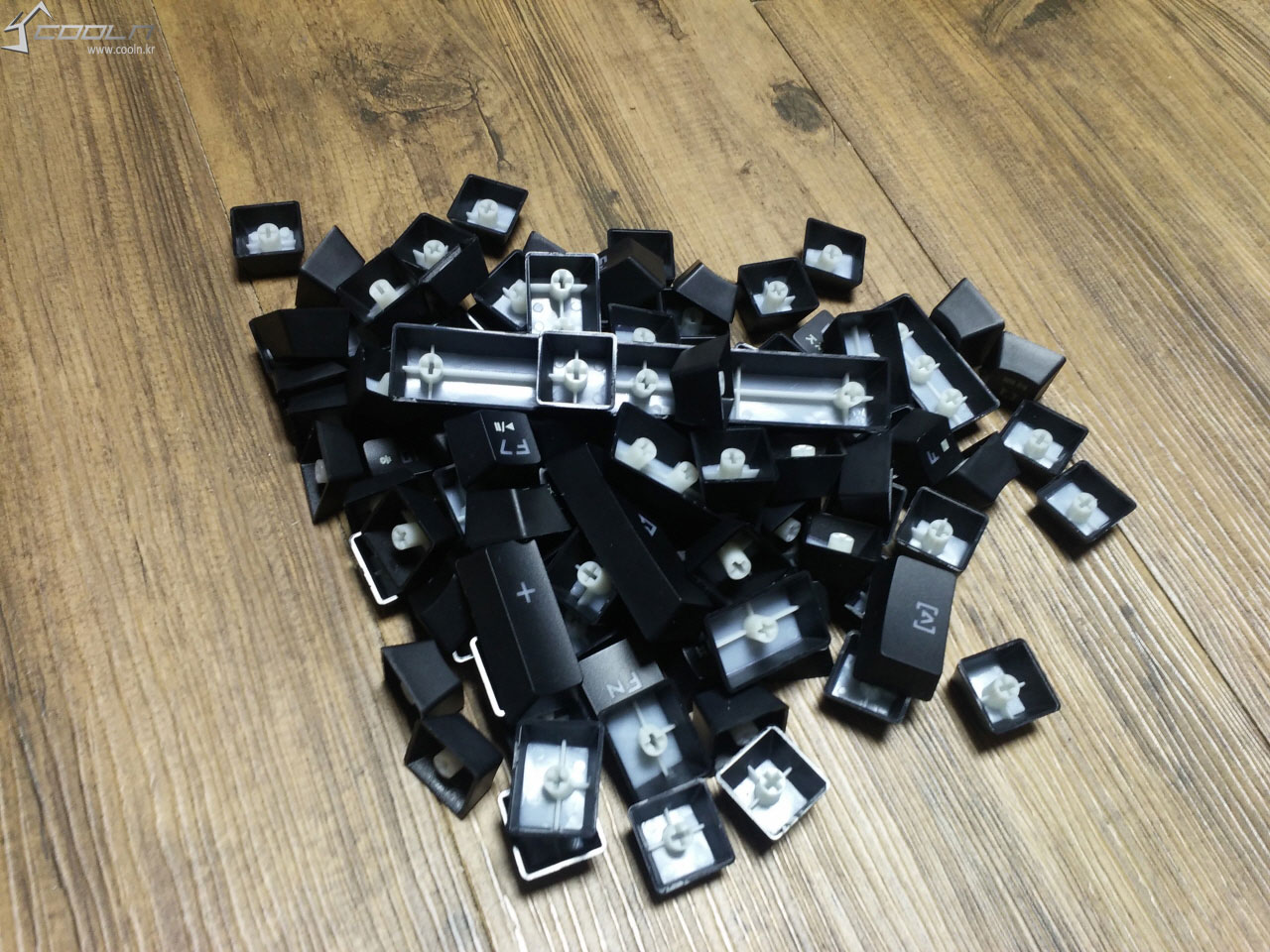 2. 탭키의 체결 상태가 반대로 되어 있었습니다. - 내부를 열기 위해 키캡을 다 뽑았다가 다시 체결하는 과정에서의 실수.