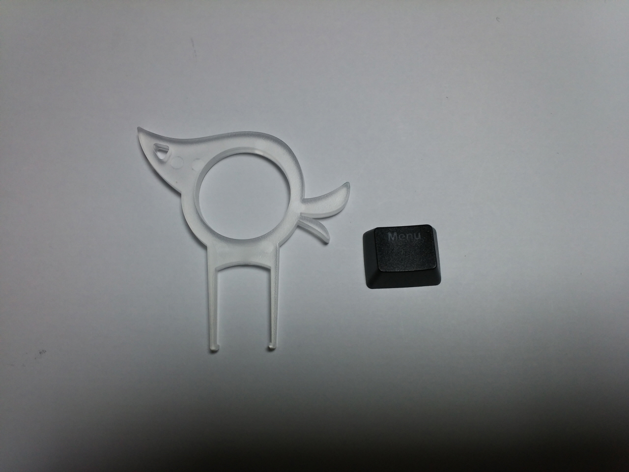 키캡 리무버와 Menu 각인의 추가 키캡 입니다. 키보드 뒷면의 딥스위치 설정을 통해 우측 Fn 위치를 Menu 키(컨텍스트 키)로 변경할 수 있기 때문에 추가 키캡이 제공 되고 있습니다.