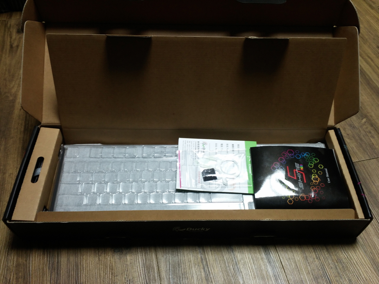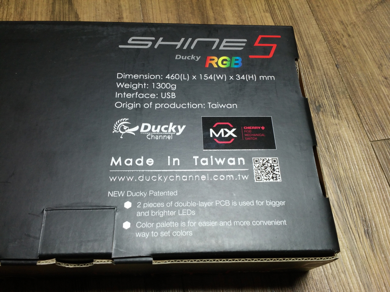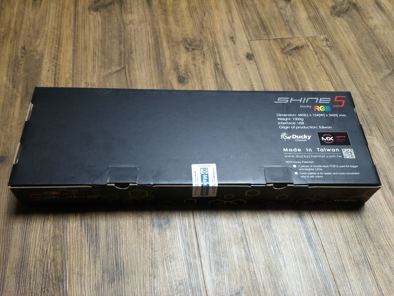 박스의 전면 모습 입니다. 중앙에는 DUCKY SHINE 5 제품명이 프린트 되어 있고,