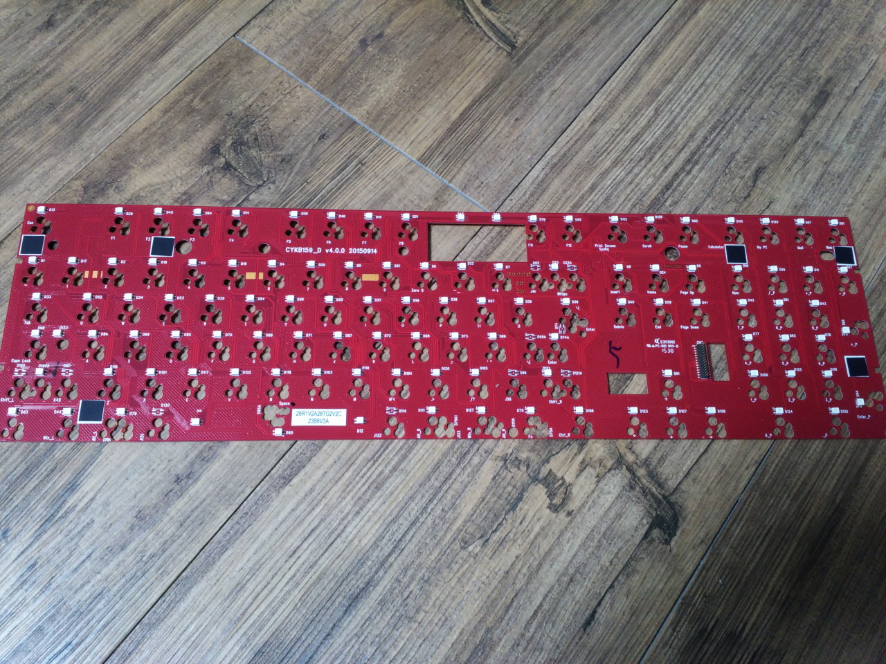 더키 로고가 있는 저 작은 기판은 스위치가 박힌 기판과 칩 LED와 MCU가 실장 된 기판을 연결하는 역할을 합니다.
