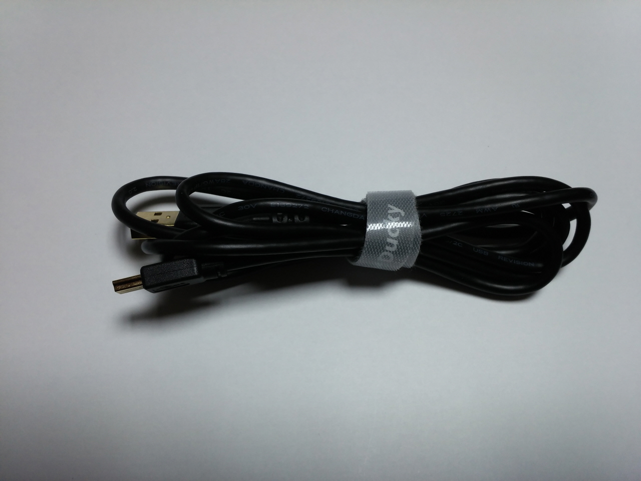 USB mini-B 타입의 탈착식 케이블 입니다. 연결 부분은 모두 금도금 처리가 되어 있고, 벨크로 타이를 제공하고 있습니다.