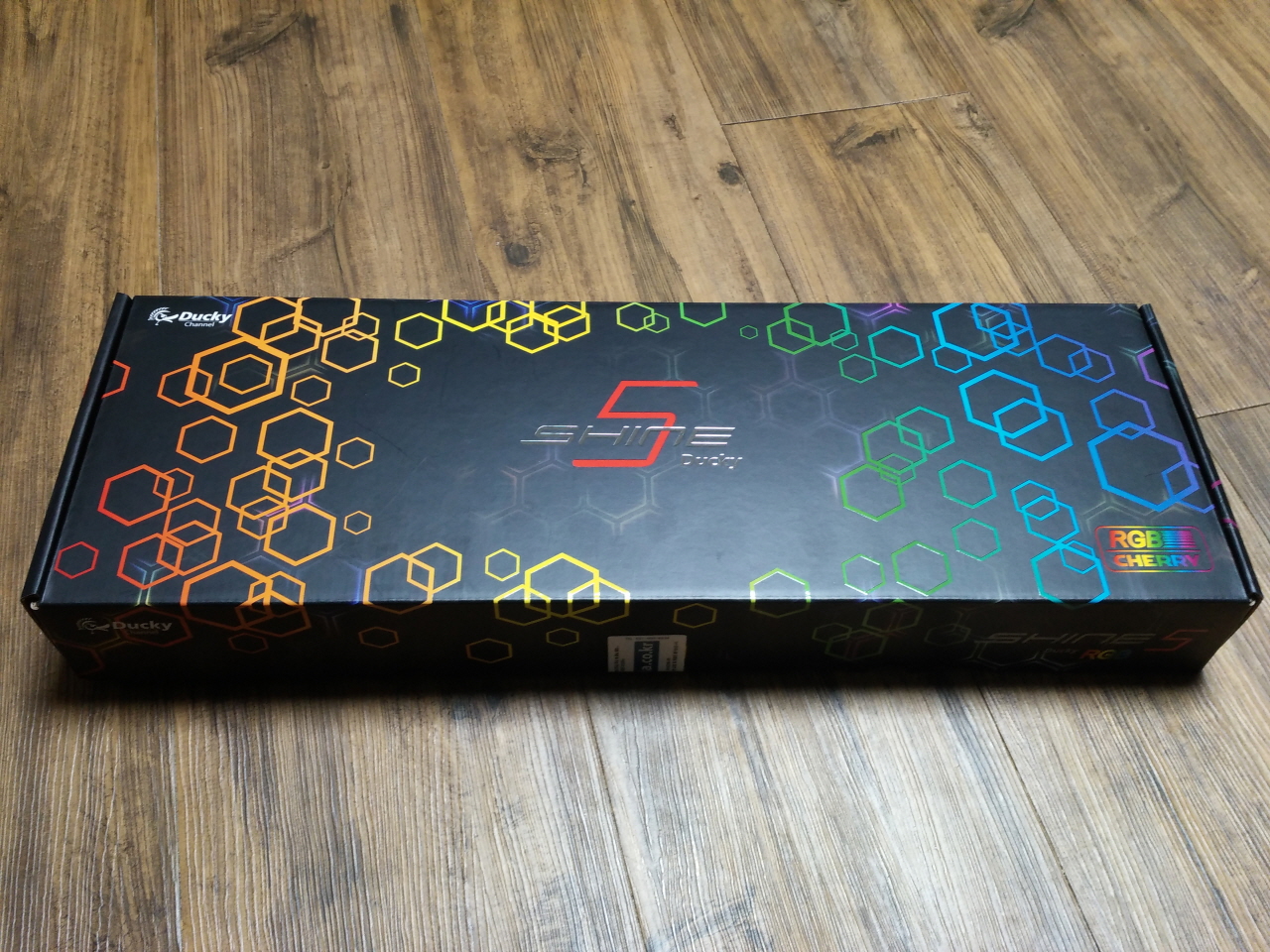 박스의 전면 모습 입니다. 중앙에는 DUCKY SHINE 5 제품명이 프린트 되어 있고,