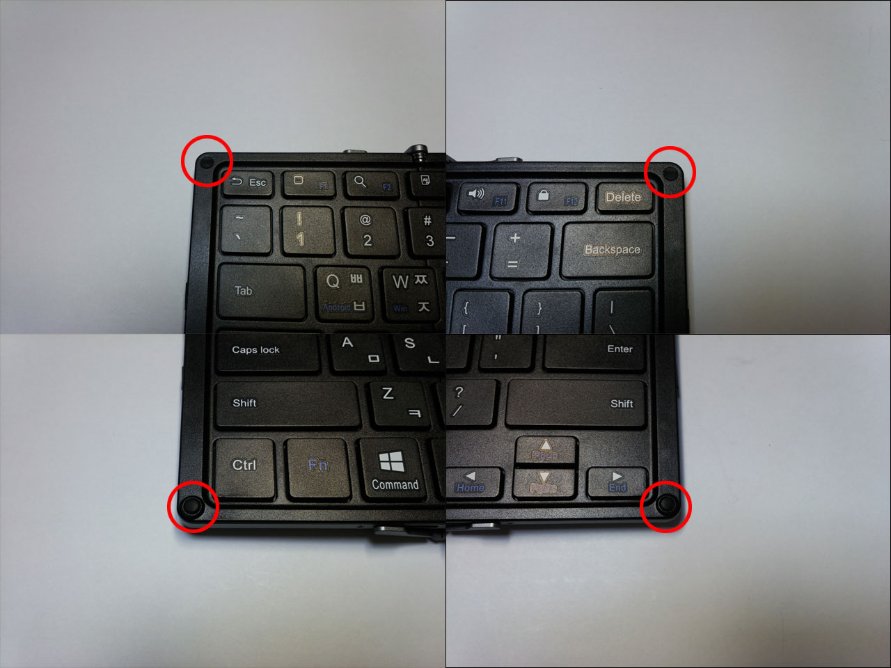 키보드의 각 모서리 부분에는 고무 처리가 되어 있어 키보드를 접을 때 마찰로 인한 흠집이 생기지 않도록 방지해주는 역할을 합니다.