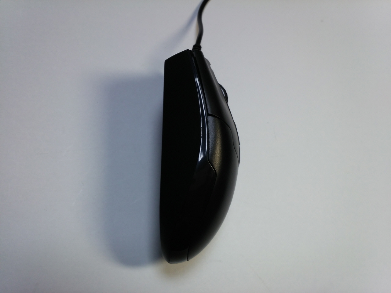 마우스의 측면 모습입니다. 전체적으로 저가형 마우스 치고는 무난한 형태와 성능을 지니고 있습니다.