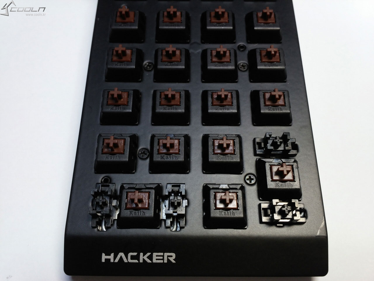 동봉 된 키캡 리무버를 이용하여 키캡을 모두 뽑아 보았습니다. 키캡은 ABS 재질이며 각인은 레이저 프린트 입니다.