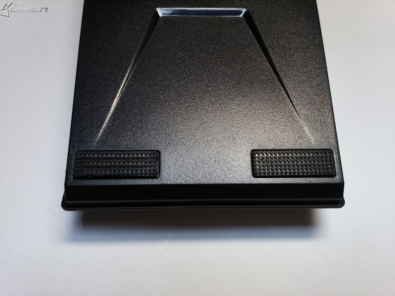 뒷면의 모습입니다. 제품 라벨과 고무 패드가 있는 것을 볼 수 있습니다. 한가지 아쉬운 점으로는 높이 조절 다리가 없다는 점입니다.