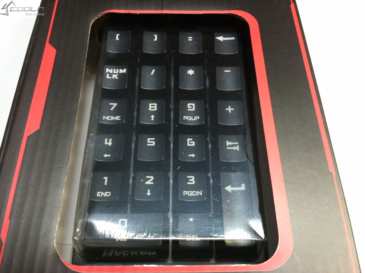 포장을 벗겨 내면 오늘의 주인공인 K522 키패드가 제일 먼저 반겨 줍니다. 일반적인 텐키 패드 레이아웃과는 좀 다른 것을 알 수 있습니다. 가장 최상단 열에는 ( ) = ← 키가 존재하며, + 키 밑에 탭키가 하나 더 있는 것을 볼 수 있습니다.