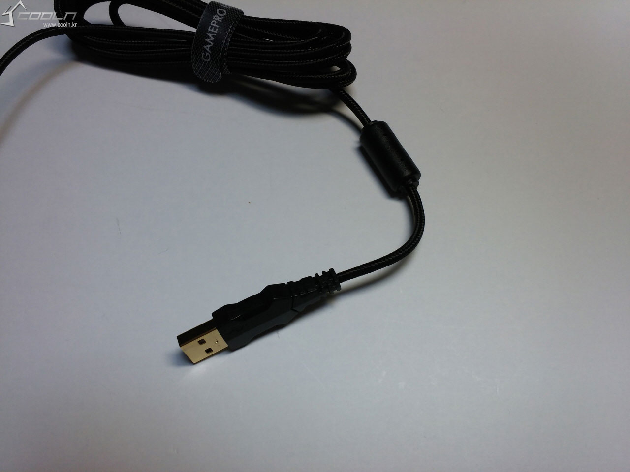 직조 케이블 방식으로 금도금 USB 단자와 노이즈 필터가 적용 되어 있습니다. 케이블을 묶을 수 있도록 벨크로 타이가 제공 되고 있습니다. 케이블의 길이는 약 1.8m 정도 됩니다.