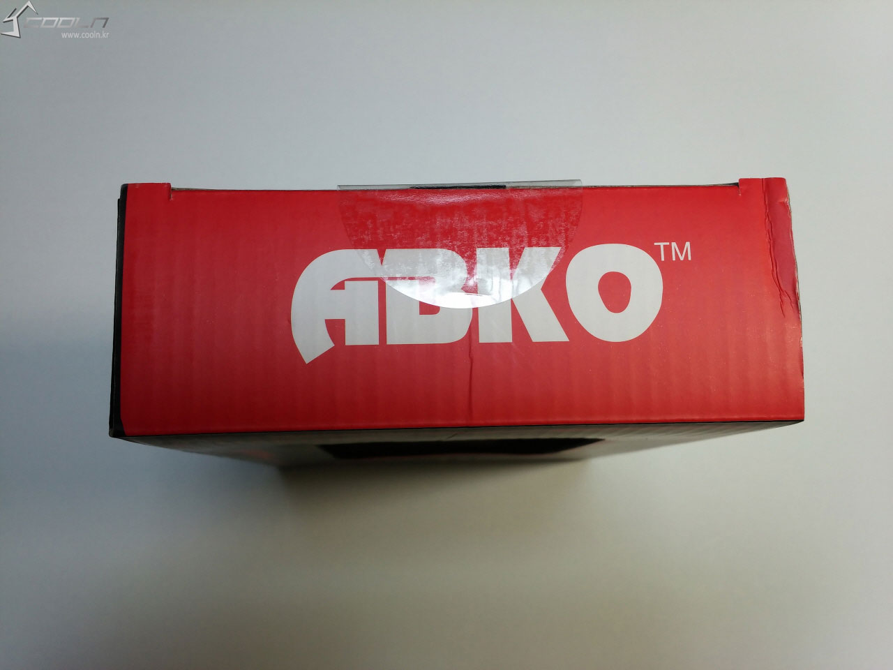 윗 부분에는 ABKO의 로고와 개봉을 위하여 뜯어내야하는 투명 스티커가 부착 되어 있습니다.