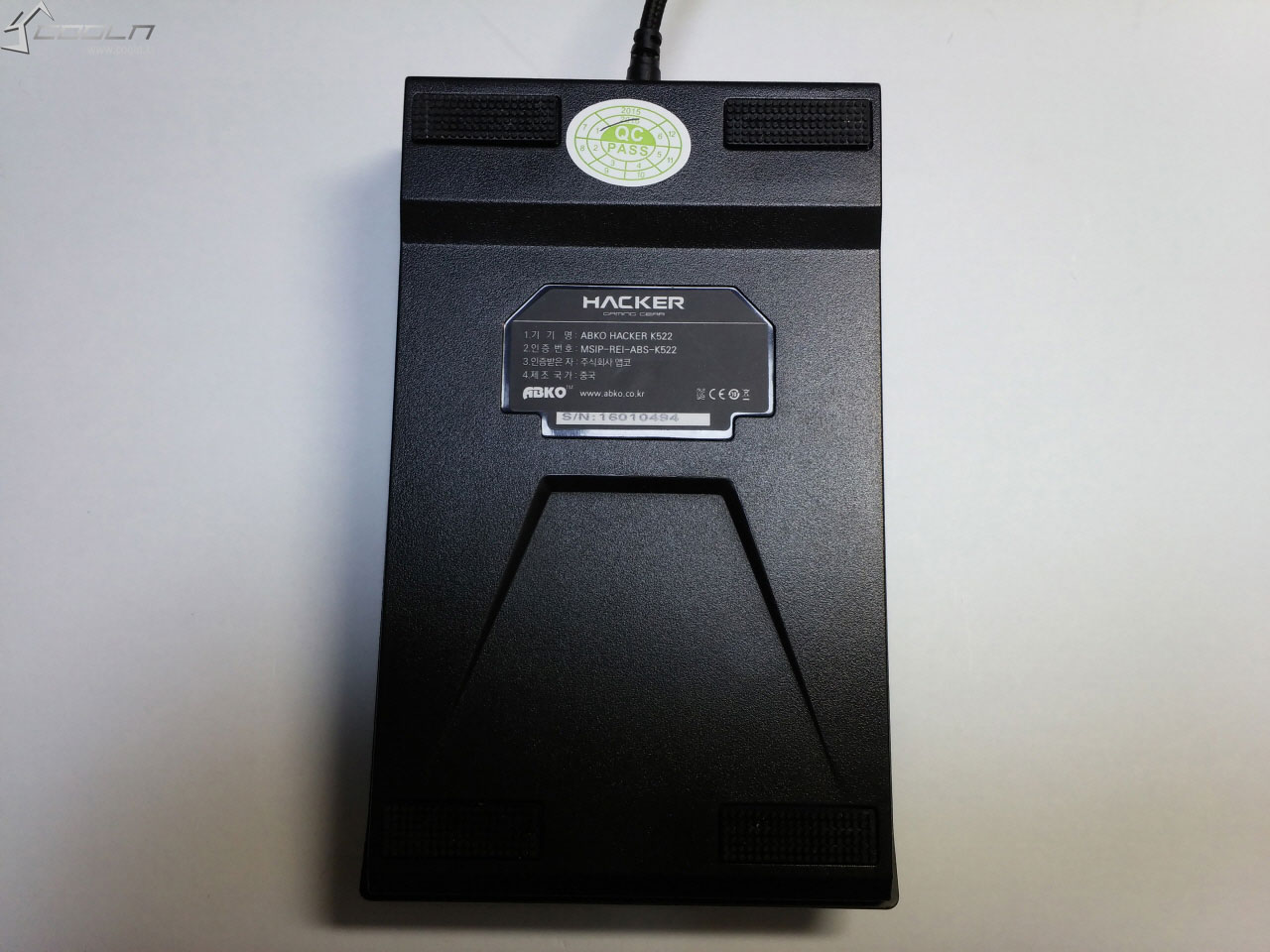 뒷면의 모습입니다. 제품 라벨과 고무 패드가 있는 것을 볼 수 있습니다. 한가지 아쉬운 점으로는 높이 조절 다리가 없다는 점입니다.