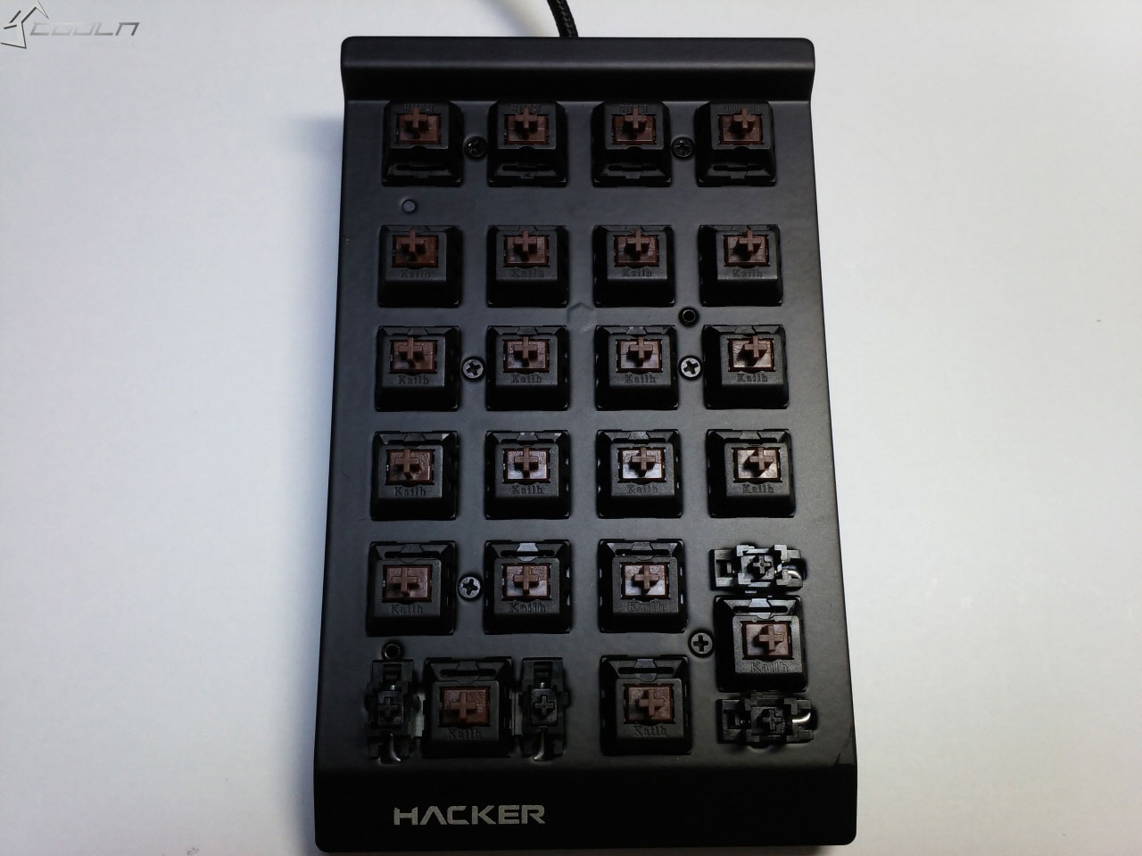 키패드의 키캡을 모두 제거 한 모습입니다. 0 키와 엔터 키에는 보강판 고정 방식의 스테빌라이저가 적용 되어 있습니다.