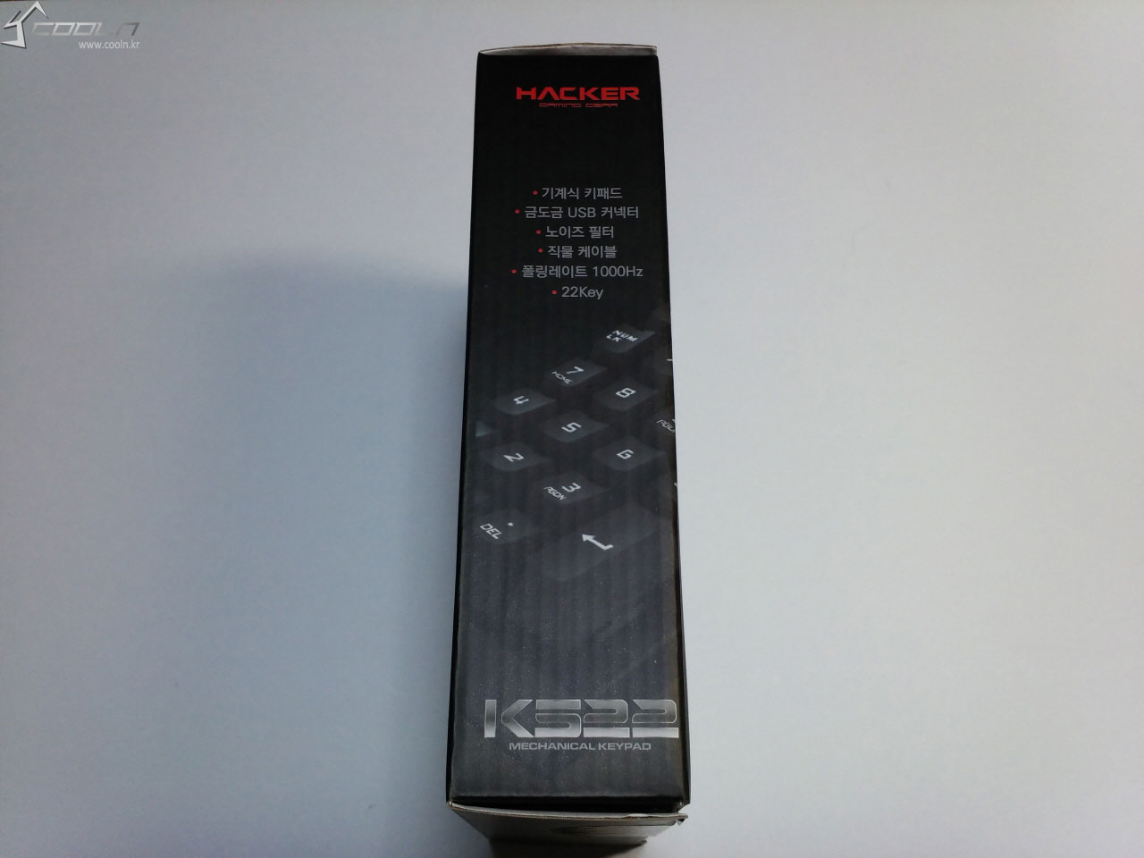 포장을 벗겨 내면 오늘의 주인공인 K522 키패드가 제일 먼저 반겨 줍니다. 일반적인 텐키 패드 레이아웃과는 좀 다른 것을 알 수 있습니다. 가장 최상단 열에는 ( ) = ← 키가 존재하며, + 키 밑에 탭키가 하나 더 있는 것을 볼 수 있습니다.
