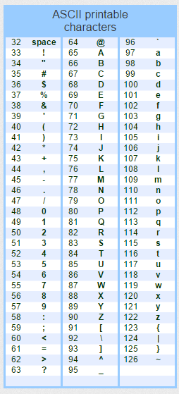 ASCII 코드 표를 보면 왼쪽 괄호의 값은 40 이고, 오른쪽 괄호는 41, 등호는 61인 것을 알 수 있습니다.