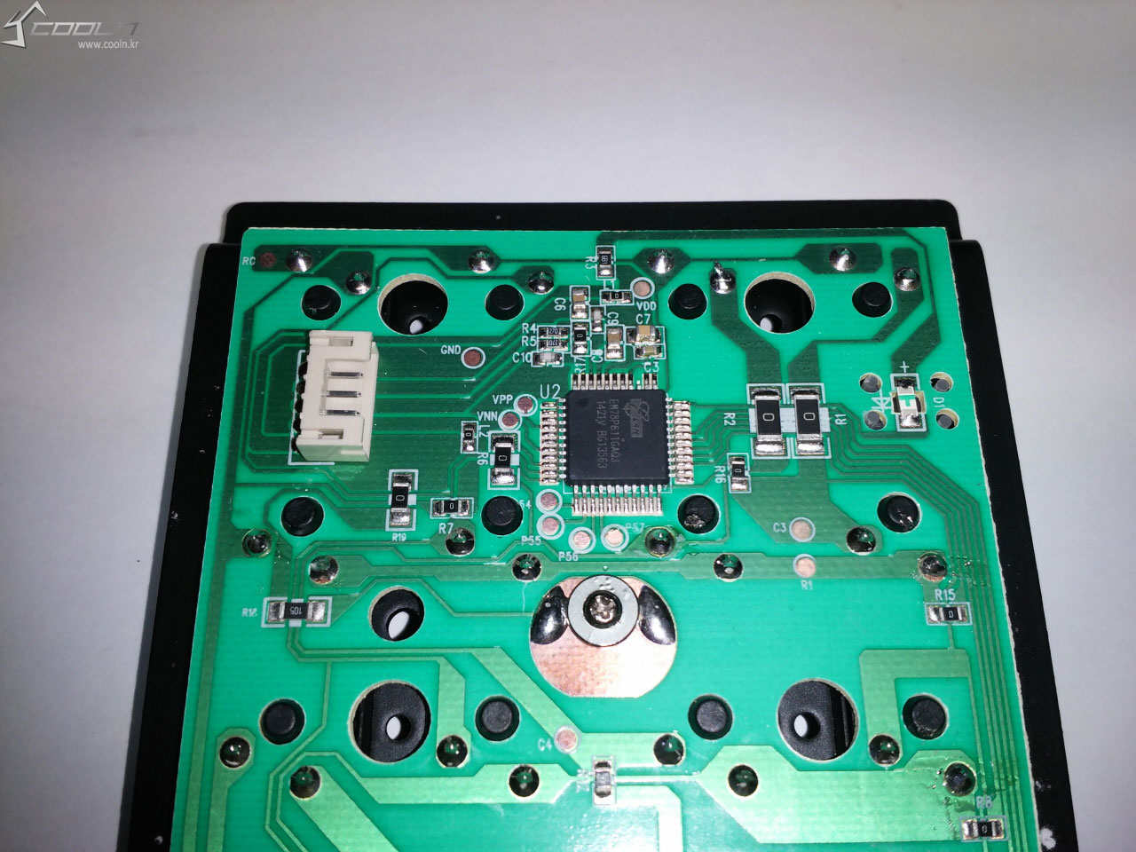상판과 PCB의 뒷 면의 모습 입니다. 컨트롤러와 케이블 연결을 위한 소켓 등을 볼 수 있습니다.