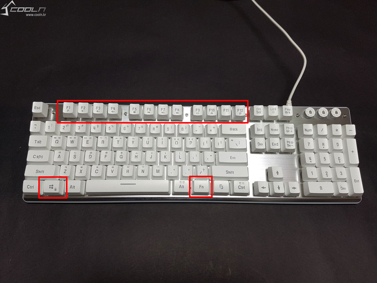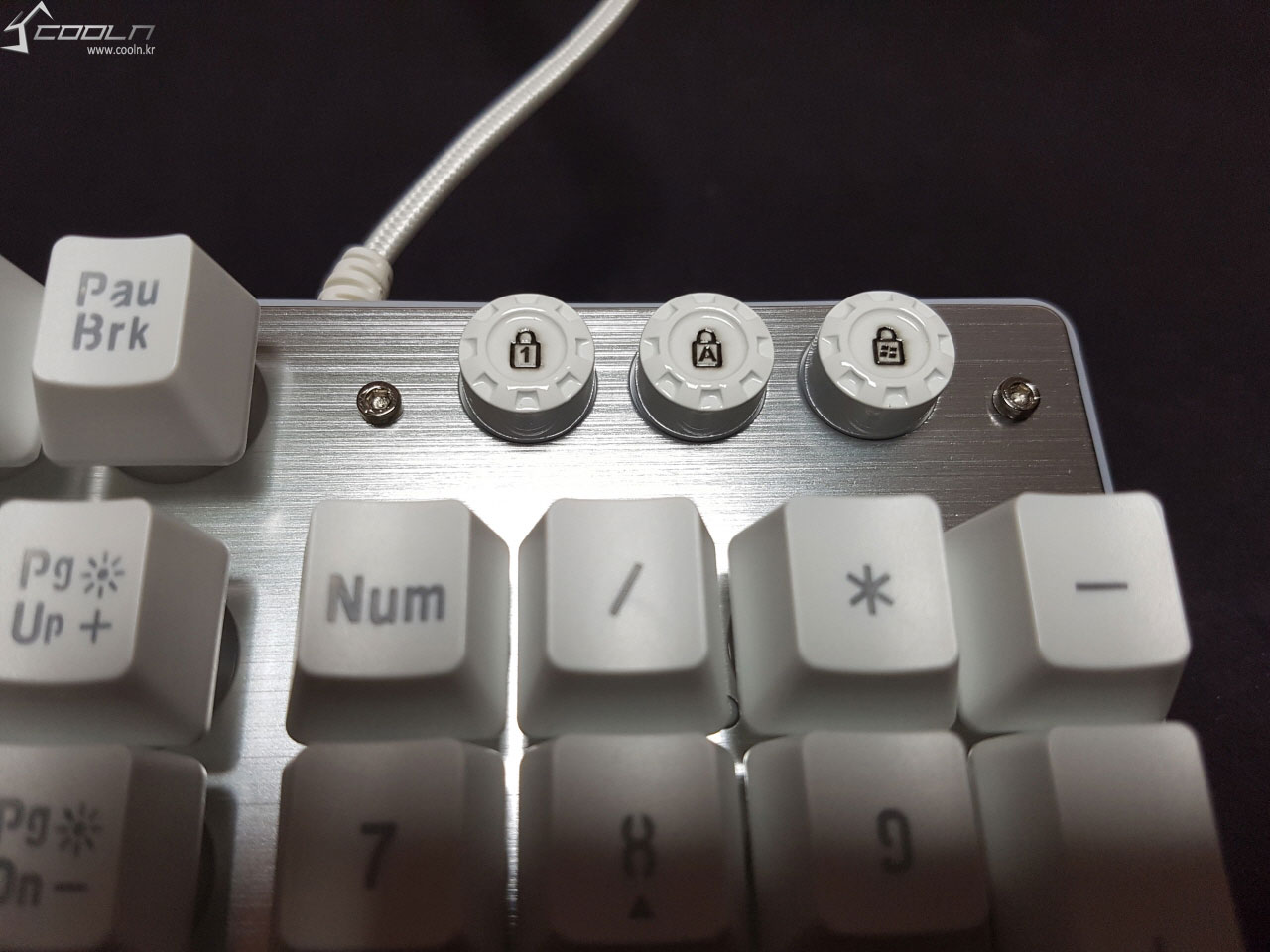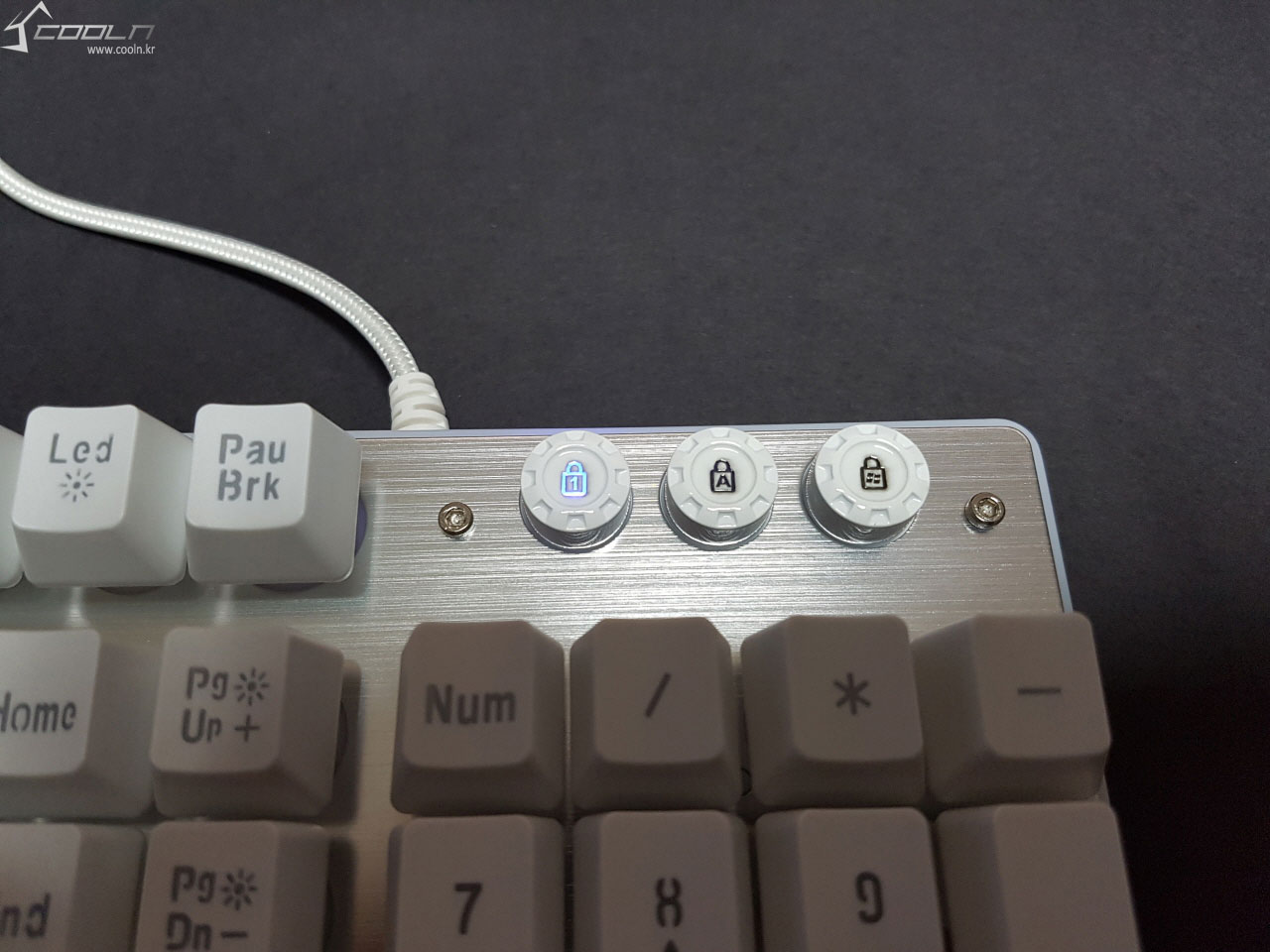 우측 상단에는 Num Lock, Caps Lock, Winkey Lock 용의 LED가 위치 하고 있습니다.