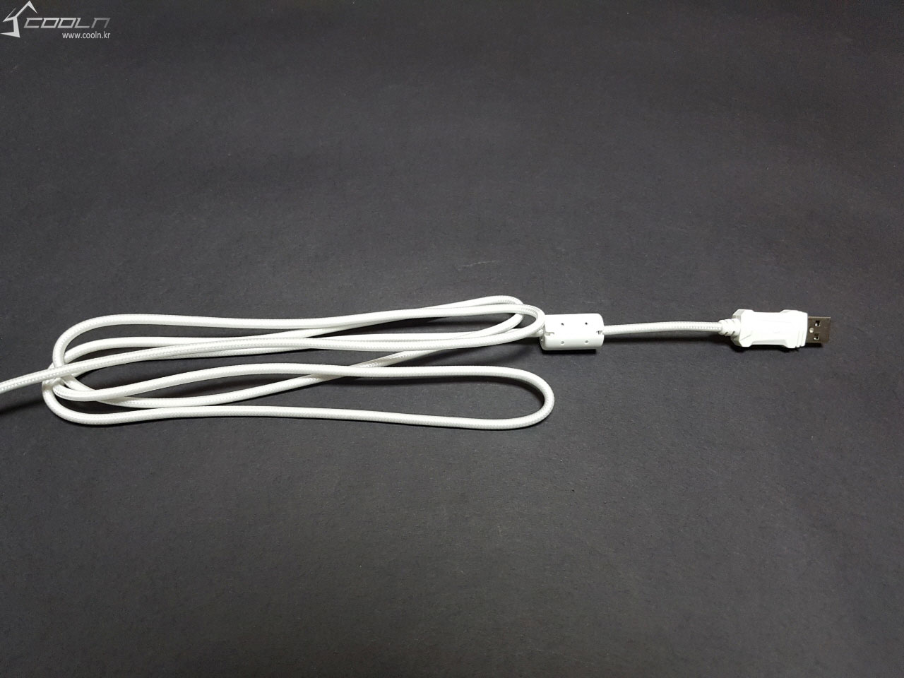 직조 타입의 케이블로 줄 꼬임을 방지하고 있으며, 노이즈 필터가 적용되어 있는 것을 확인할 수 있습니다.