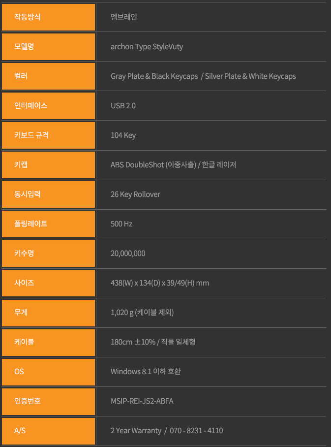 전반적인 디자인은 깔끔하면서 마감이 잘 되어 있는 느낌 입니다. 작년만해도 메탈 상판의 키보드들이 다소 날카로우면서도 요란 스러운 디자인이 많았는데, 최근에는 StyleVuty 키보드와 같이 단정한 느낌으로도 많이 출시되고 있는 것 같습니다. 개인적으로는 단정한 디자인의 키보드가 질리지 않고 오래 쓸 수 있는 것 같습니다.