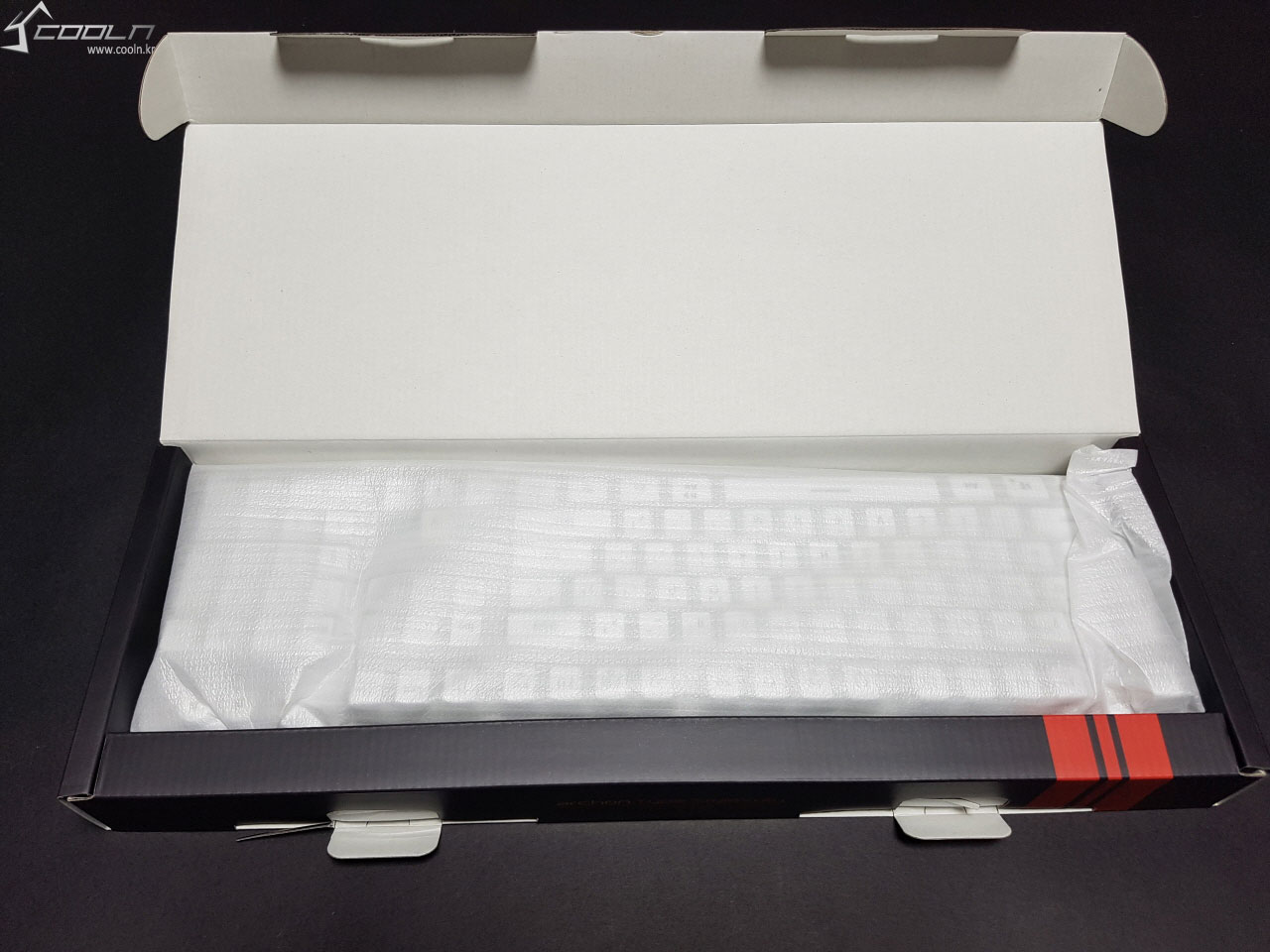 박스를 개봉한 모습 입니다. 키보드는 포장이 되어 있어 배송 시 발생할 수 있는 흠집을 방지 합니다.