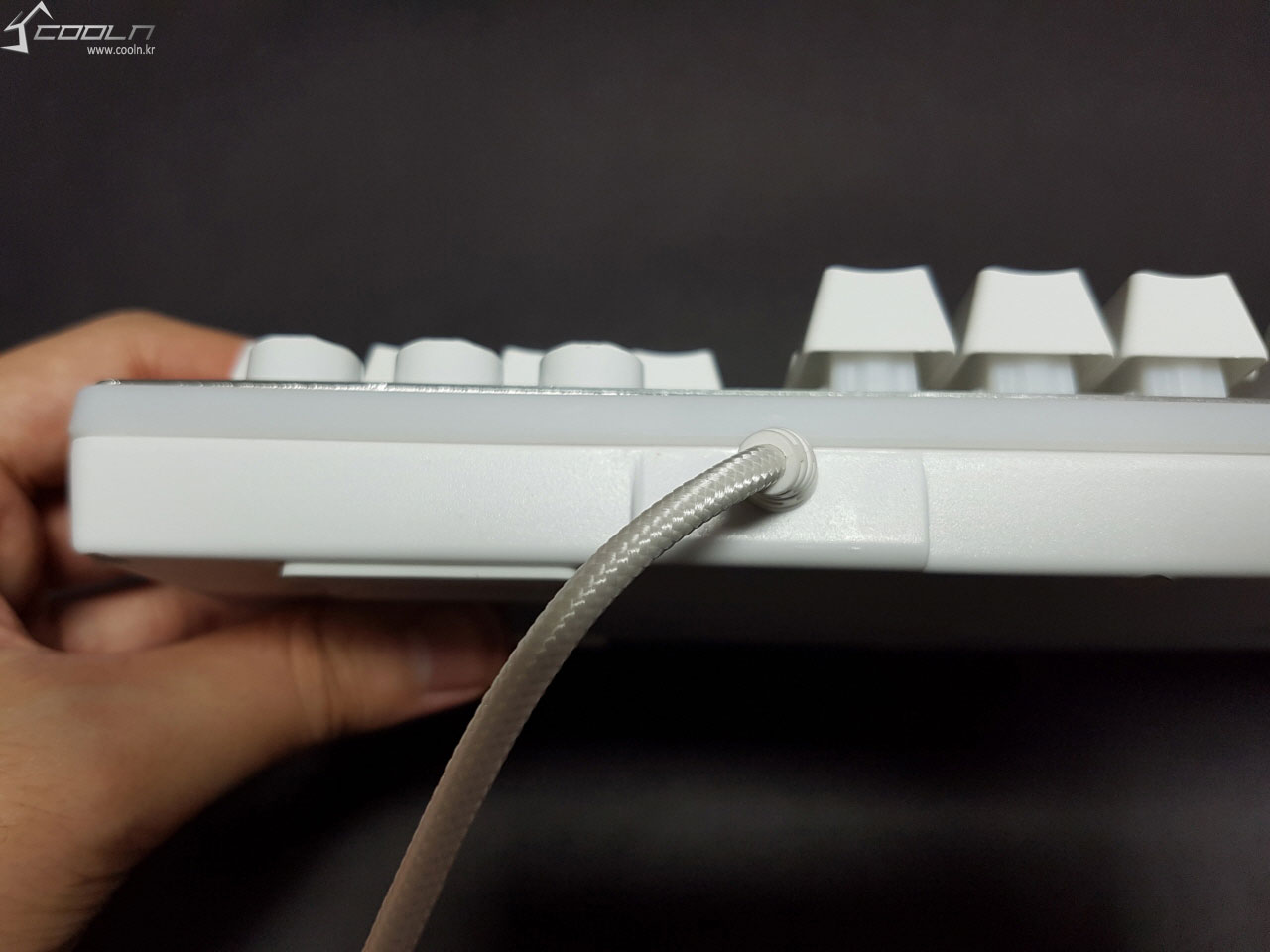키보드와 케이블의 연결 부분으로 고무 패킹 처리가 단단하게 되어 있어 단선 방지에 도움을 주고 있습니다.