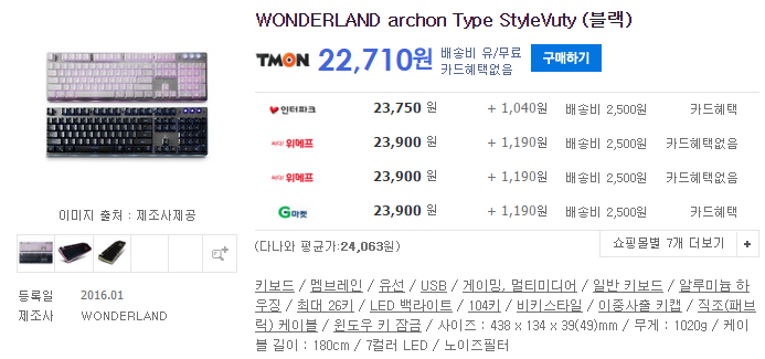 WONDERLAND archon Type StyleVuty (화이트) 키보드는 단정한 디자인에 부드러운 키감이 돋보이는 제품으로, 현재 2만원 초반대의 가격을 형성하고 있습니다.