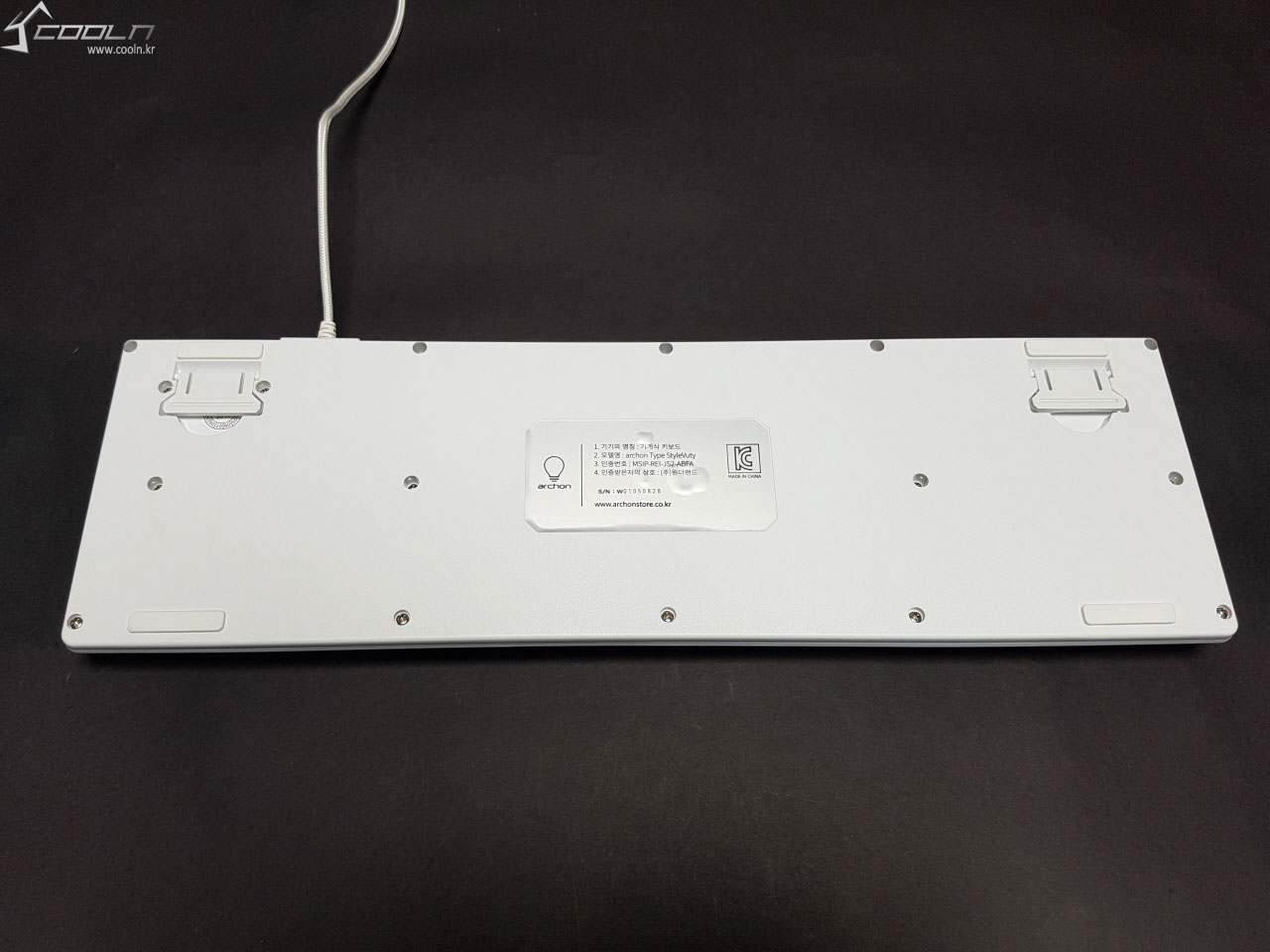 박스의 측면으로 제품명이 프린트 되어 있으며 좌측에 키보드의 색상이 표기 되어 있습니다. 제가 수령한 제품은 화이트 색상 입니다.