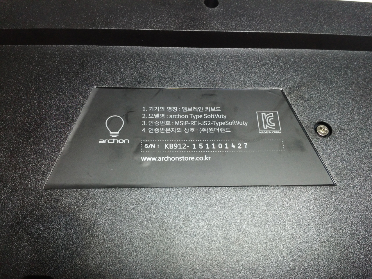 제품 라벨의 모습 입니다. 모델명, 인증번호, 시리얼번호가 기재되어 있습니다.