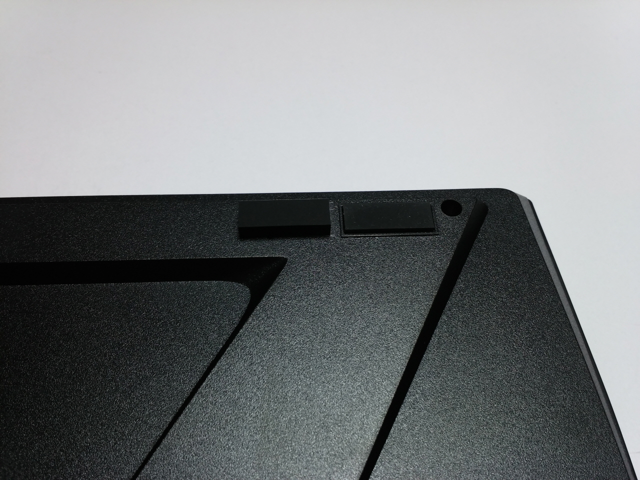 기존에 붙어 있던 고무 패드를 제거하고 5mm 높이의 고무 패드를 붙여 보았습니다. 추가로 제공 되는 고무패드에는 한쪽면에 양면 테이프가 붙어 있어서 쉽게 부착이 가능하였습니다. 5mm 높이 고무패드를 붙였을 때 확실히 높이가 높아진 것을 체감할 수 있었습니다.