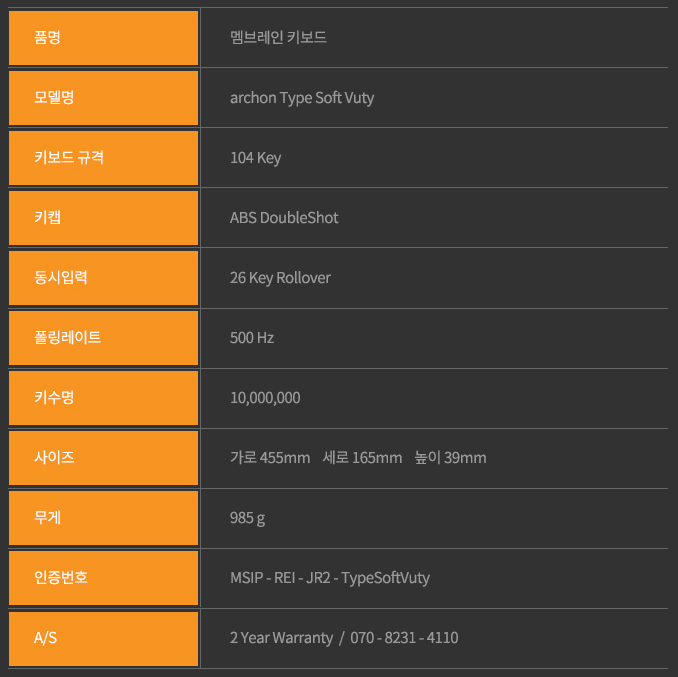 - 기존 멤브레인 키보드 대비 구분감 있는 키감