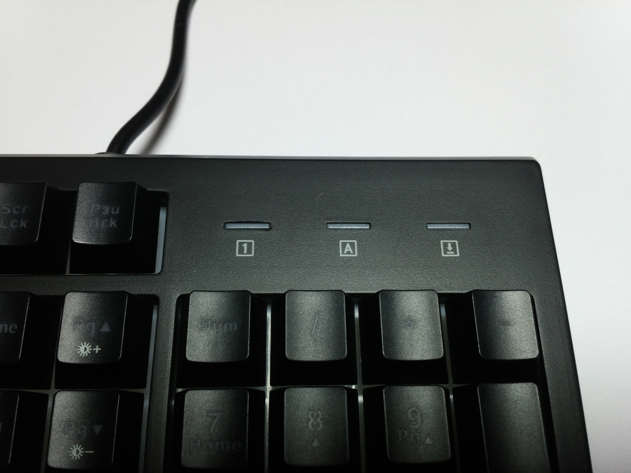 우측 상단에는 Num Lock, Caps Lock, Scroll Lock 용 LED가 위치 하고 있습니다.