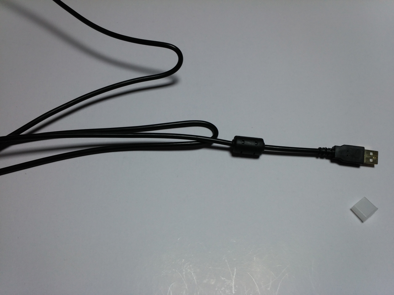 케이블은 최근 유행하는 직조 형태는 아니여서 조금 뻣뻣한 느낌이 있는 편 입니다. USB 금도금 단자와 노이즈 필터가 적용되어 있으며 단자 보호용 캡을 제공하고 있습니다.