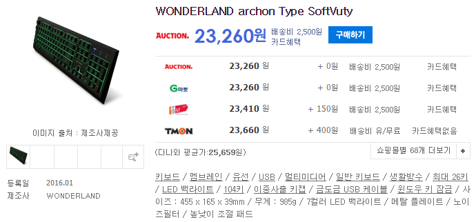 WONDERLAND archon Type SoftVuty 키보드는 체리 프로파일 높이의 키캡과 구분감 있는 키감이 돋보이는 제품으로, 현재 2만원대의 가격을 형성하고 있습니다.