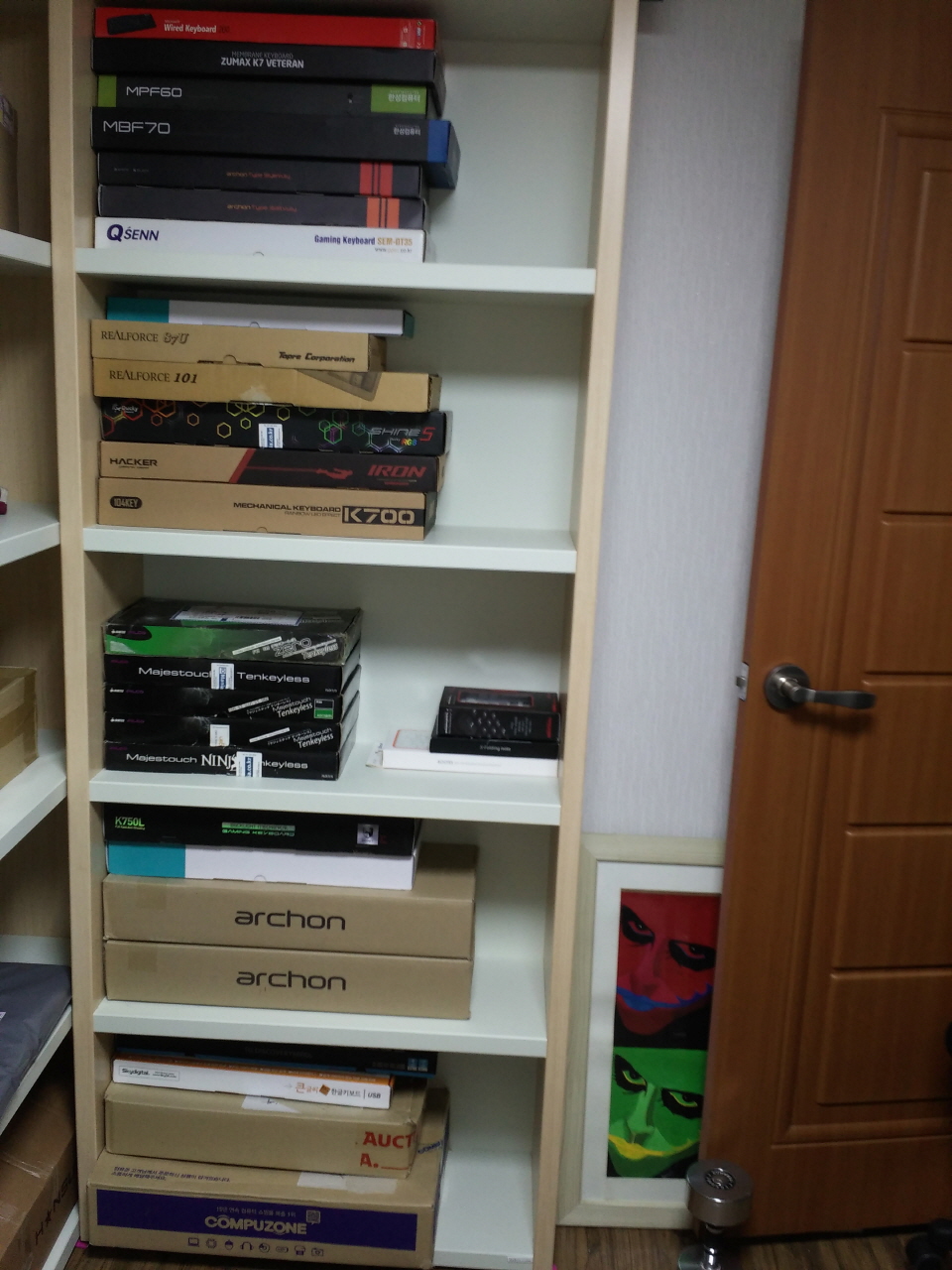 그 동안 침대 밑이나 창고의 남는 공간에 키보드들을 보관 하였었는데, 키보드 보관용 책장을 구입하였습니다.