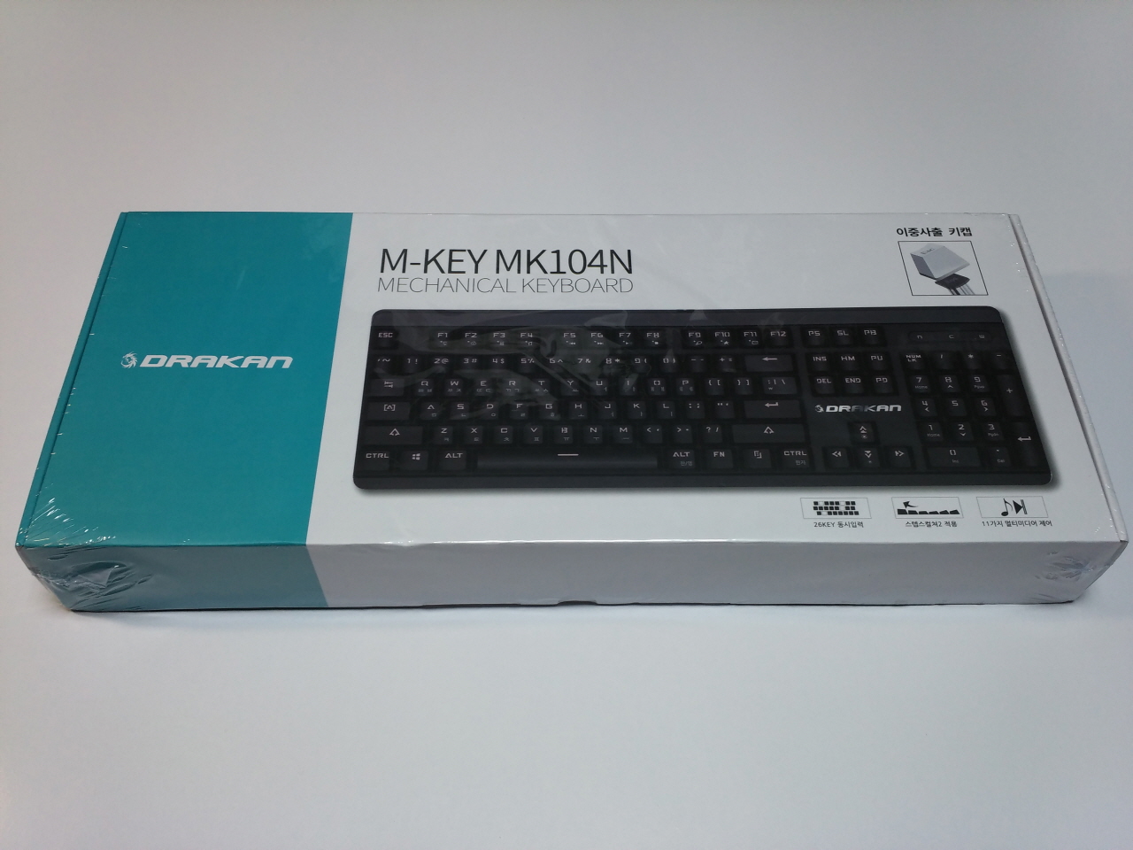 DRAKAN M-KEY MK104N (이하 MK104N)은 CONTENT 스위치를 사용하였는데, 처음 보는 새로운 스위치라서 기대가 됩니다. 그럼 박스 부터 살펴 보도록 하겠습니다.