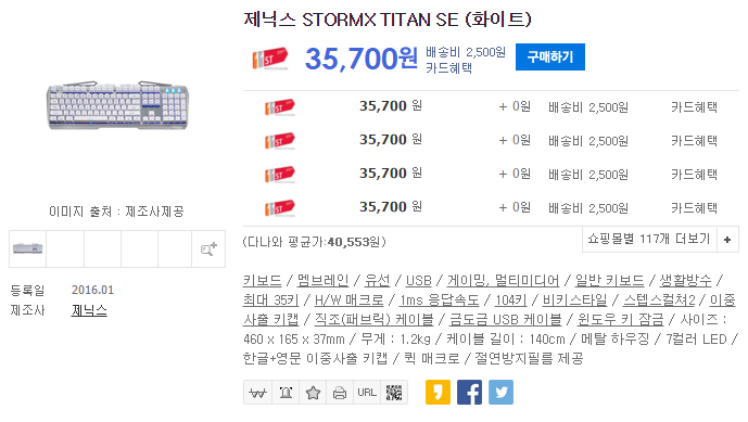 제닉스 STORMX TITAN SE는 현재 다나와 가격비교 기준으로 약 3만원 중반대의 가격을 형성 하고 있습니다. 메탈 상판 비키 타입 멤브레인 키보드의 부흥을 이끈 원조에 가까운 제품으로 후발 주자로 나선 타사의 동급 키보드들에 비해서는 약간 높은 가격대에 위치하고 있는 것이 사실 입니다.