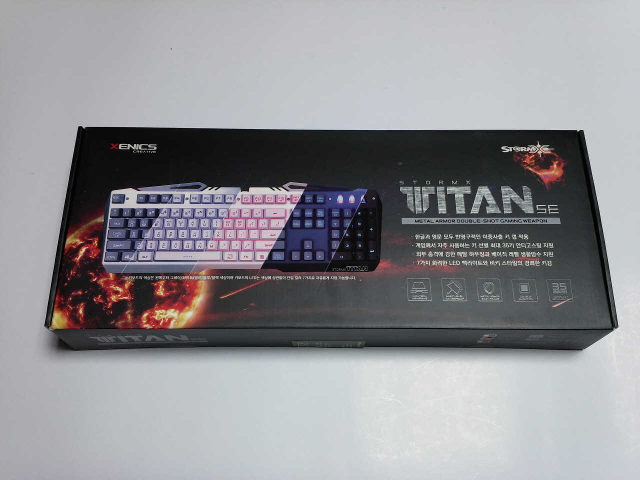 리뷰 작성 날짜 기준으로 약 10일 전에 제닉스 사이트에 TITAN SE LED 펌웨어(http://www.xenics.co.kr/shop/board/view.php?id=download&no=506)가 올라왔었습니다. PC 종료 후 키를 눌렀을 때 LED가 깜박 거리는 증상을 개선한 펌웨어인데, 직접 적용해보았습니다.