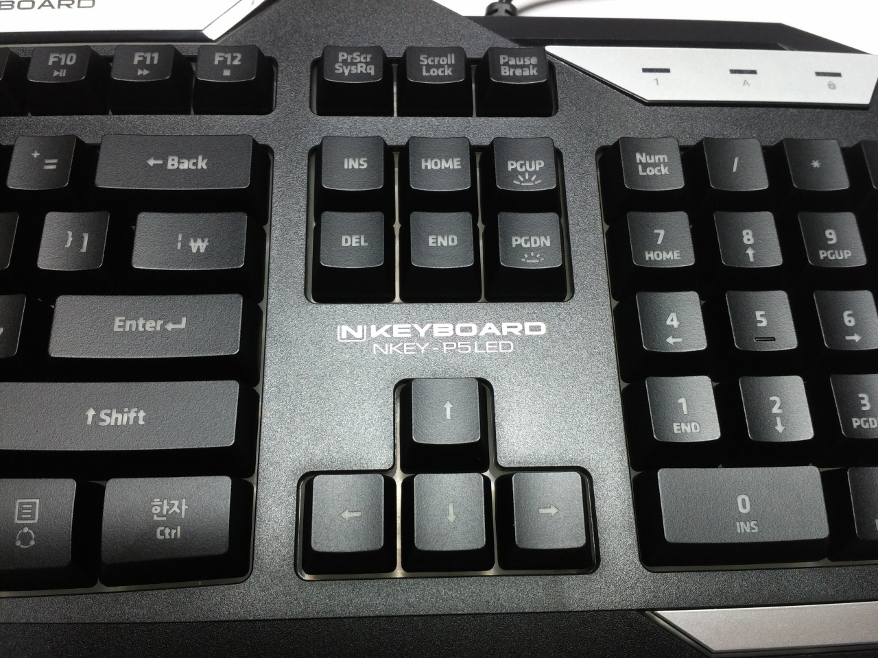 방향키 위 부분에는 NKEYBOARD NKEY-P5 LED 제품명이 프린트 되어 있습니다.