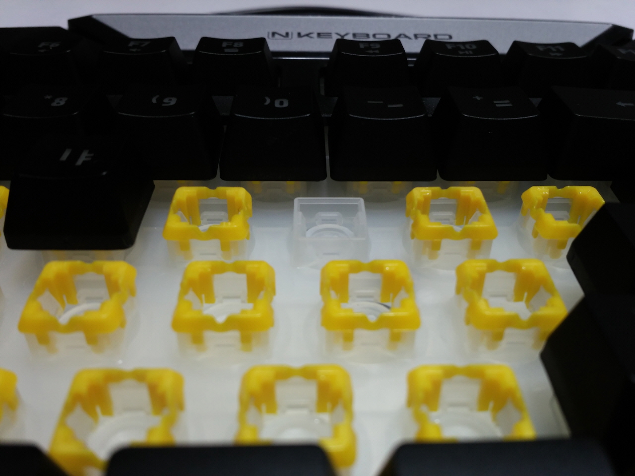 키보드에서 키캡을 뽑은 모습으로 NKEY-P5의 가장 큰 특징이라고 할 수 있는 다이아몬드 링 구조물을 볼 수 있습니다.